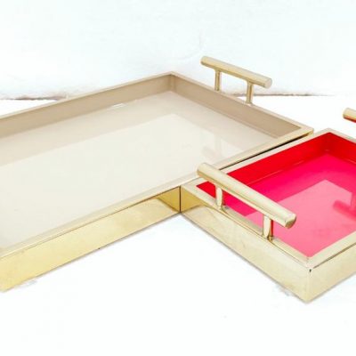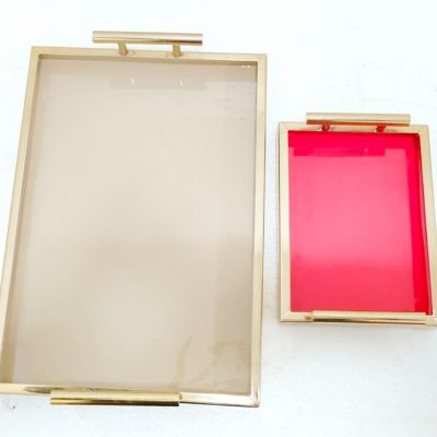 Bring out the serving tray for tea, scones and more. Rectangular shape offers a variety of options. Handles make it easy to lift and carry. Bold colours add an eye-catching touch. Gold finish adds style.