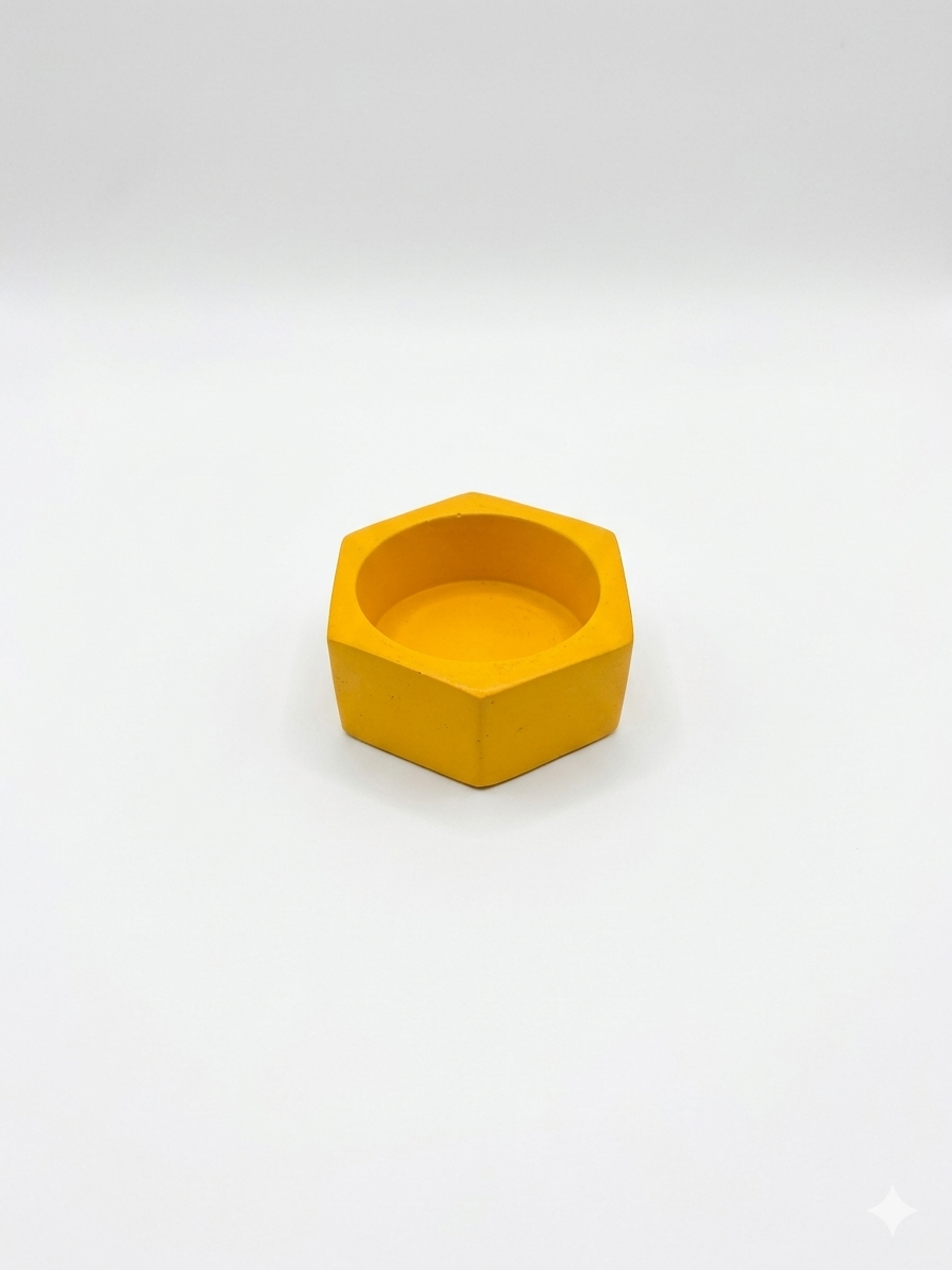 Hexagon Tealight Candle Holder – Modern Concrete Decorative Candle Stand (Yellow)
