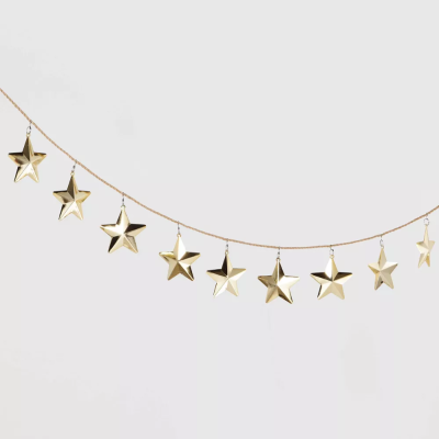 Decorative Metal Star Garland Gold